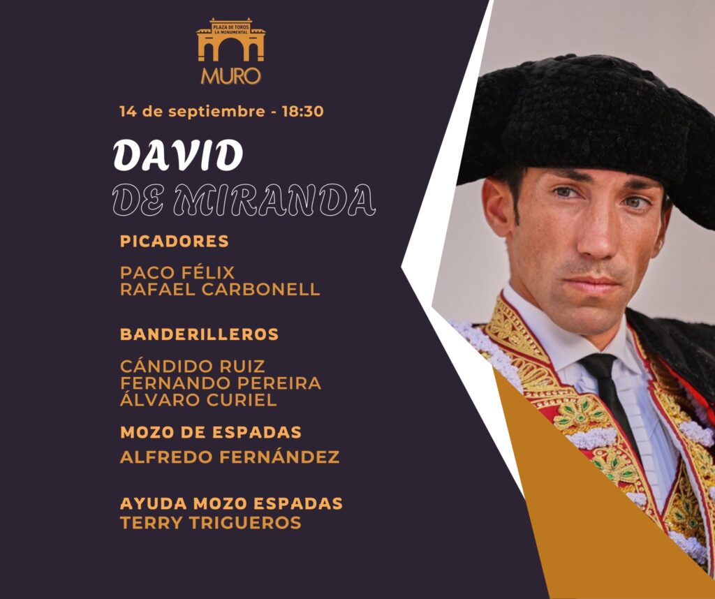 Se modifica el orden del cartel debido al viaje programado a Perú del matador David de Miranda, quien lidiará el 1. y 4.toro de la tarde.