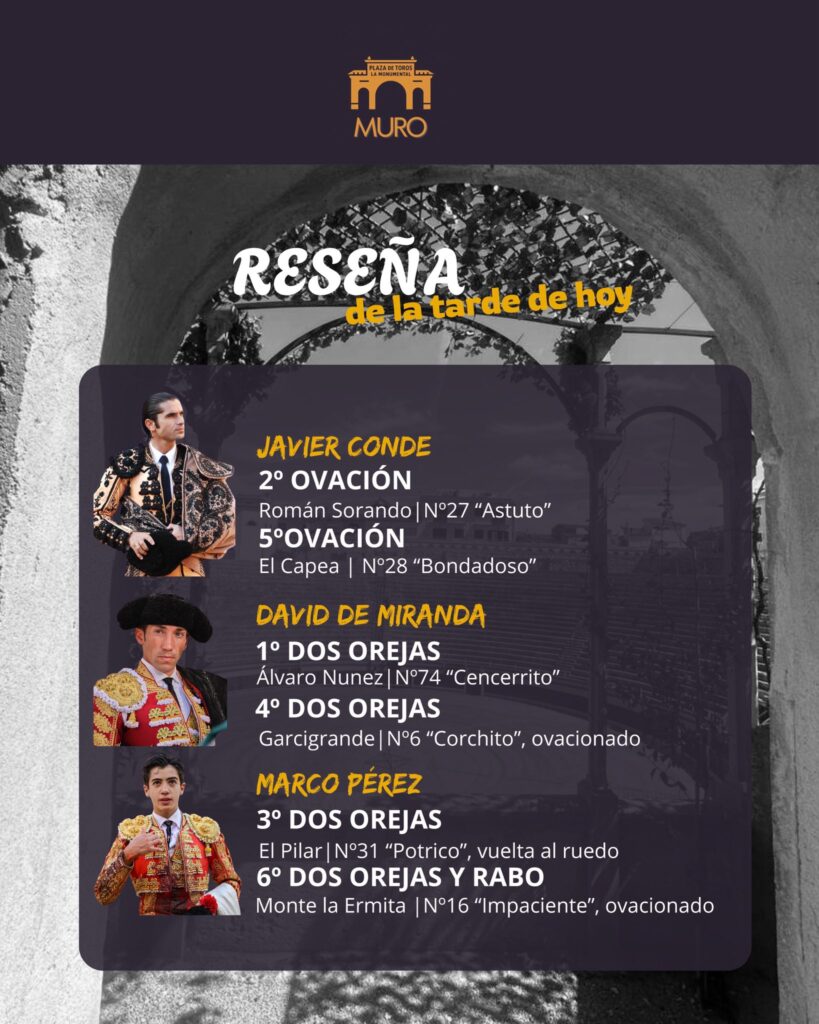 David de Miranda con cuatro orejas y Marco Pérez con cuatro orejas y un rabo triunfan a lo grande en la vuelta de los toros a la localidad mayorquina de Muro, tras ocho años sin festejos taurinos en la localidad.