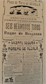 Con este clima de apasionamiento, que alimentaba de discusiones cafés, tertulias y mentideros, la plaza se llenó y hasta en el palco real se constató la presencia de la Infanta Isabel. Esta vez los toros eran españoles traídos de los campos de Sevilla, donde pastaban los de Moreno Santamaría. Tanto en el de la ceremonia –“Rapiño”, número 6, berrendo en castaño y botinero; gordo, bien armado y astillado del derecho–, como en el negro zaíno “Cisquero”, que abrochó la fiesta, Segura derrochó valor en la lidia y rectitud y buena disposición al entrar a matar, siendo en ambos ovacionado.