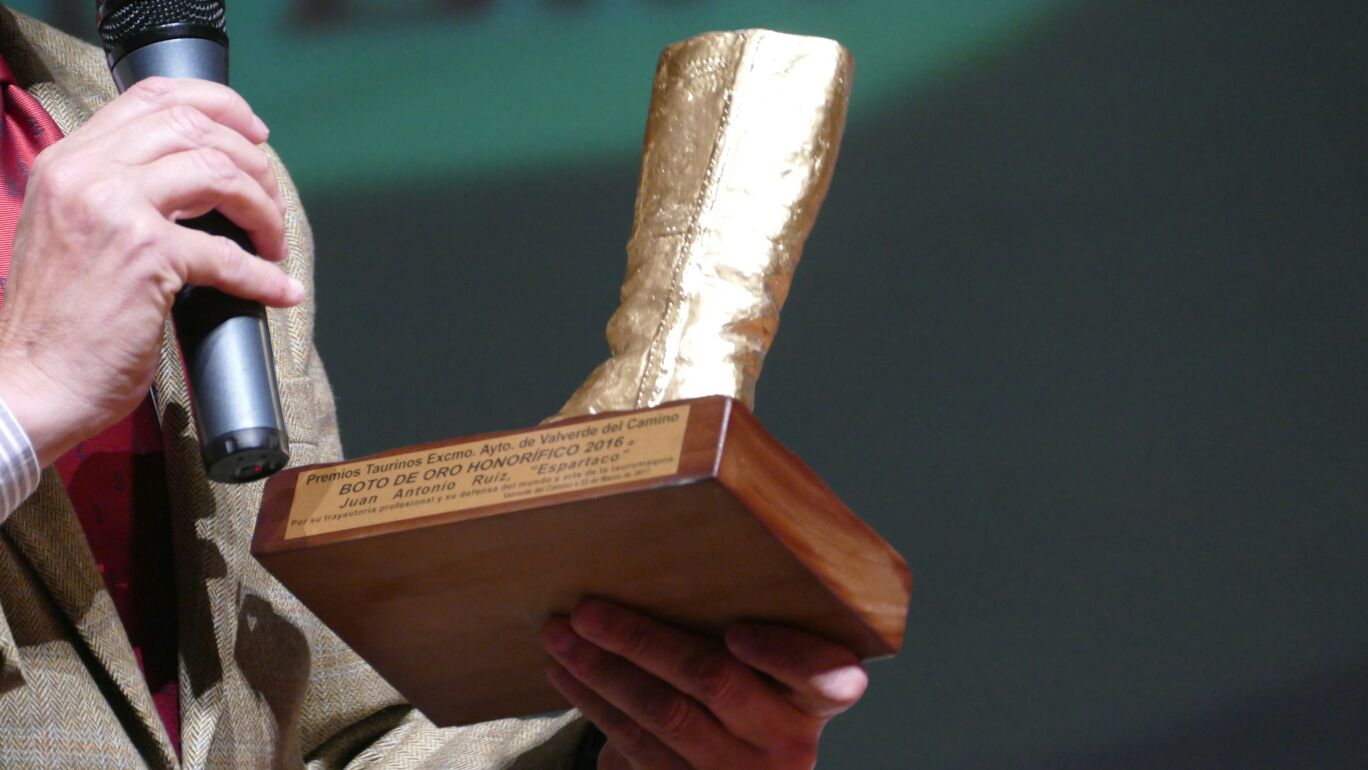 Al tiempo que se le hizo entrega de un Boto Honorífico a la trayectoria taurina al matador de toros de Espartinas, Juan Antonio Ruiz «Espartaco».